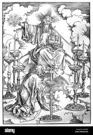 En la visión espiritual del cielo que Juan tiene de la liturgia de adoración ante el trono de Dios Creador y Soberano del universo, ve siete antorchas de fuego o lámparas de fuego; estas lámparas están representadas por la Menorá.