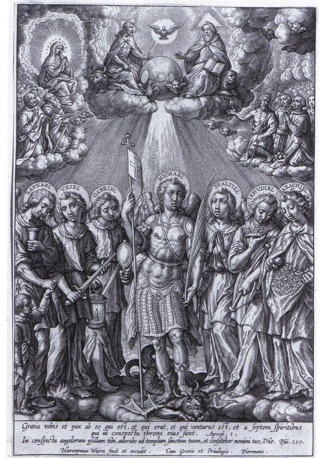 Los siete Espíritus de Dios delante del trono de Dios, pueden ser interpretados como el Espíritu Santo en la plenitud de sus siete dones. Siete es el número de Dios, el número de la perfección, del poder, de la totalidad y de lo sagrado; también pueden ser interpretados, como los < siete Ángeles (Arcángeles) de la Presencia> que están delante del trono de Dios (comentario Ap. 4,5), posteriormente tocarán las siete trompetas que anunciarán el comienzo del juicio final.
